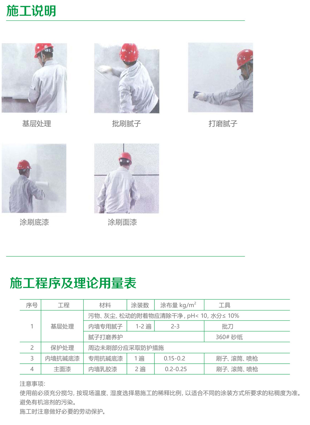 采用特別研發(fā)配方的健康環(huán)保型內(nèi)墻乳膠漆,該產(chǎn)品易施工,耐臟易擦,防霉抗菌,適用于大眾建筑的內(nèi)墻及各種柱、欄桿等裝飾造型,該產(chǎn)品健康環(huán)保,其揮發(fā)性有機(jī)化合物 VOC 含量遠(yuǎn)低于國家頒布的相關(guān)標(biāo)準(zhǔn)。